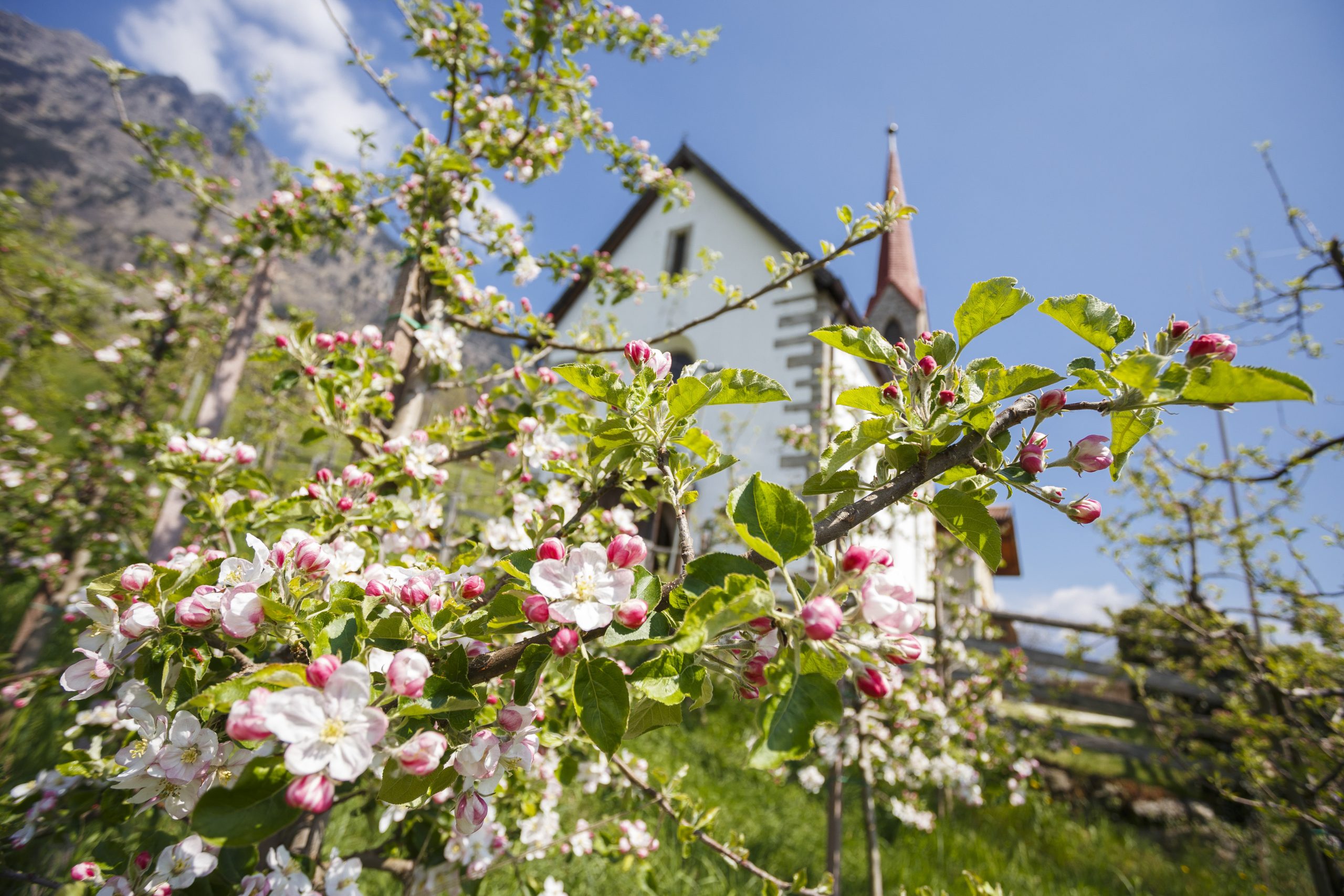 Ein Meer aus weißen und rosafarbenen Blüten, das den Frühling im Herzen Südtirols unvergesslich macht.